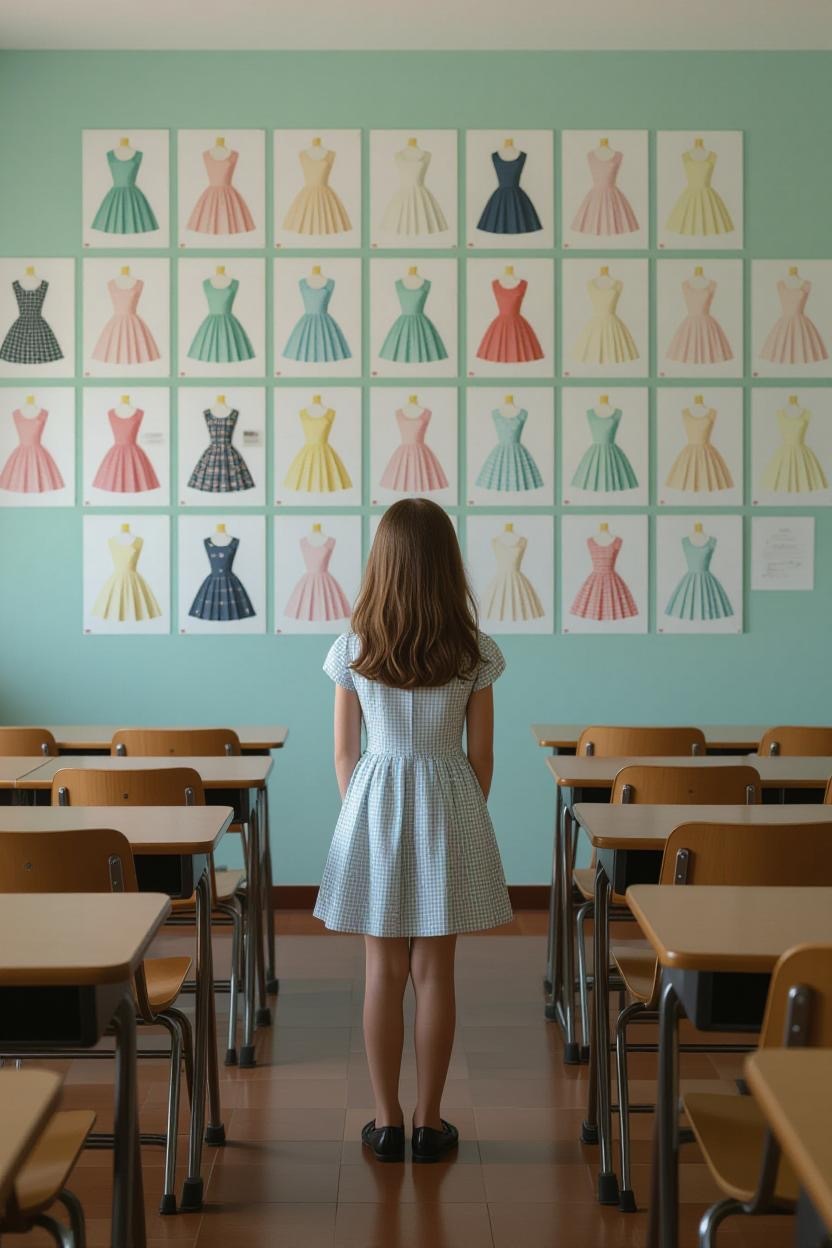 The next day was the drawing competition. Maddie thought that Peggy would win because she was so good at drawing. When they walked into the classroom, there were so many colorful pictures of dresses all over the wall. It turns out that Wanda had drawn all hundred of them, she had won!